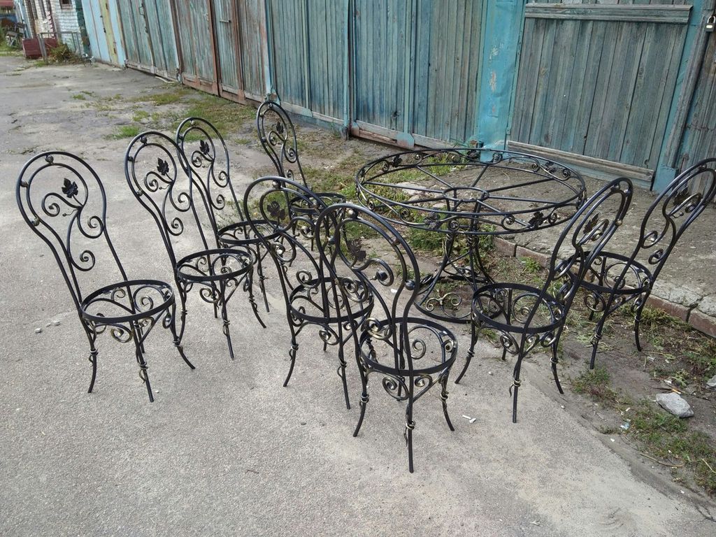 Кованый стол и стулья - ОС 01 20200 руб. Заказать Кованый стул - 9 800 руб Кованый стул - 9 800 руб С этим товаром смотрятЗаказатьКованый журнальный столик - арт 0414 300 ₽ ЗаказатьЗаказатьКованый столик - Арт 0814 700 ₽ ЗаказатьЗаказатьКованый стул - Арт 065 600 ₽ ЗаказатьЗаказатьСтул кованый - Арт 084 800 ₽ Заказать